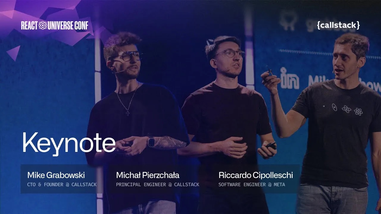 React Native is entering a new era. At React Universe Conf 2025, three leading voices in the community, Mike Grabowski (CTO & Founder, Callstack), Riccardo Cipolleschi (Software Engineer, Meta), and Michał Pierzchała (Principal Engineer, Callstack), share insights on the past, present, and future of React Native.